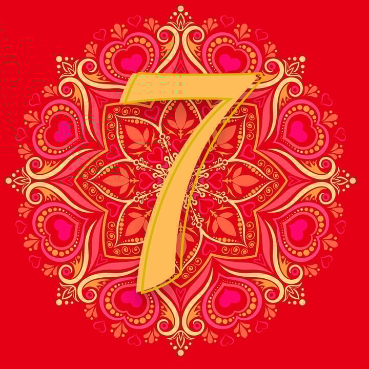 El número 7 representa la perfección espiritual, el conocimiento interior y la sabiduría divina. Está asociado con la introspección, la meditación y la búsqueda de la verdad espiritual.